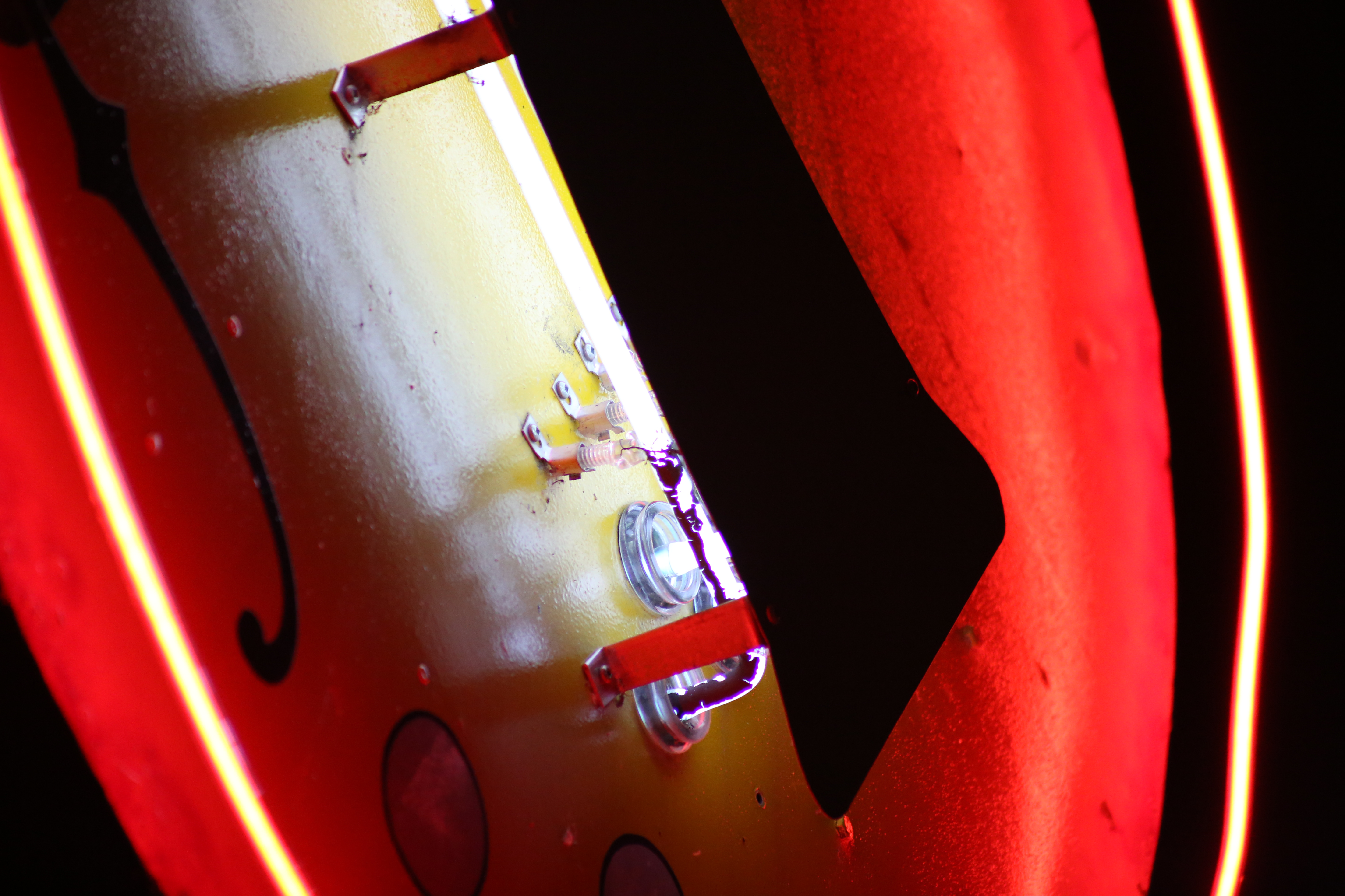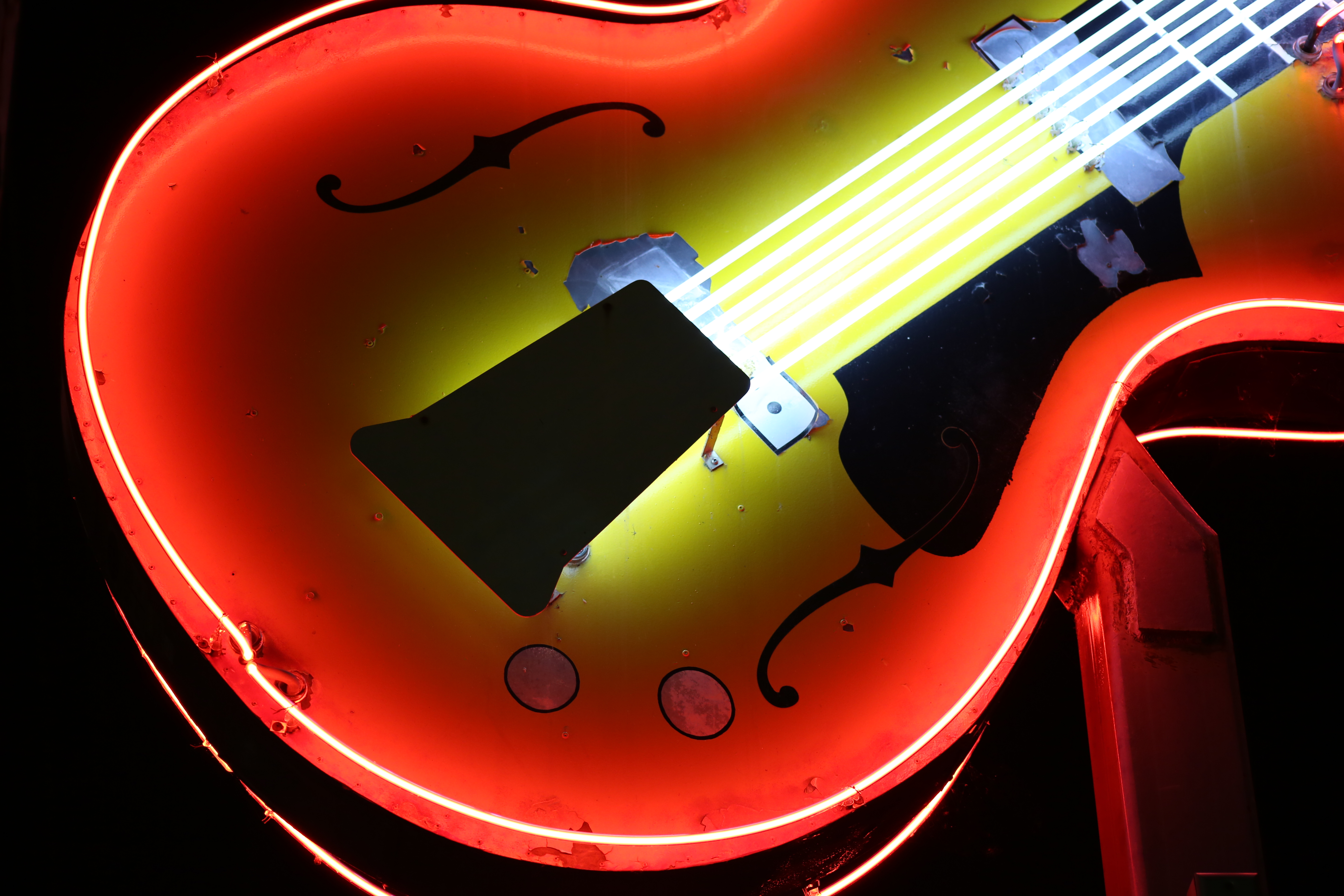On the way home, I stopped and made a bunch of images of the neon guitar of Mojo Music. It brought me right back to my project from the winter of 2006-2007, but at least it was warmer this time. Enjoy.