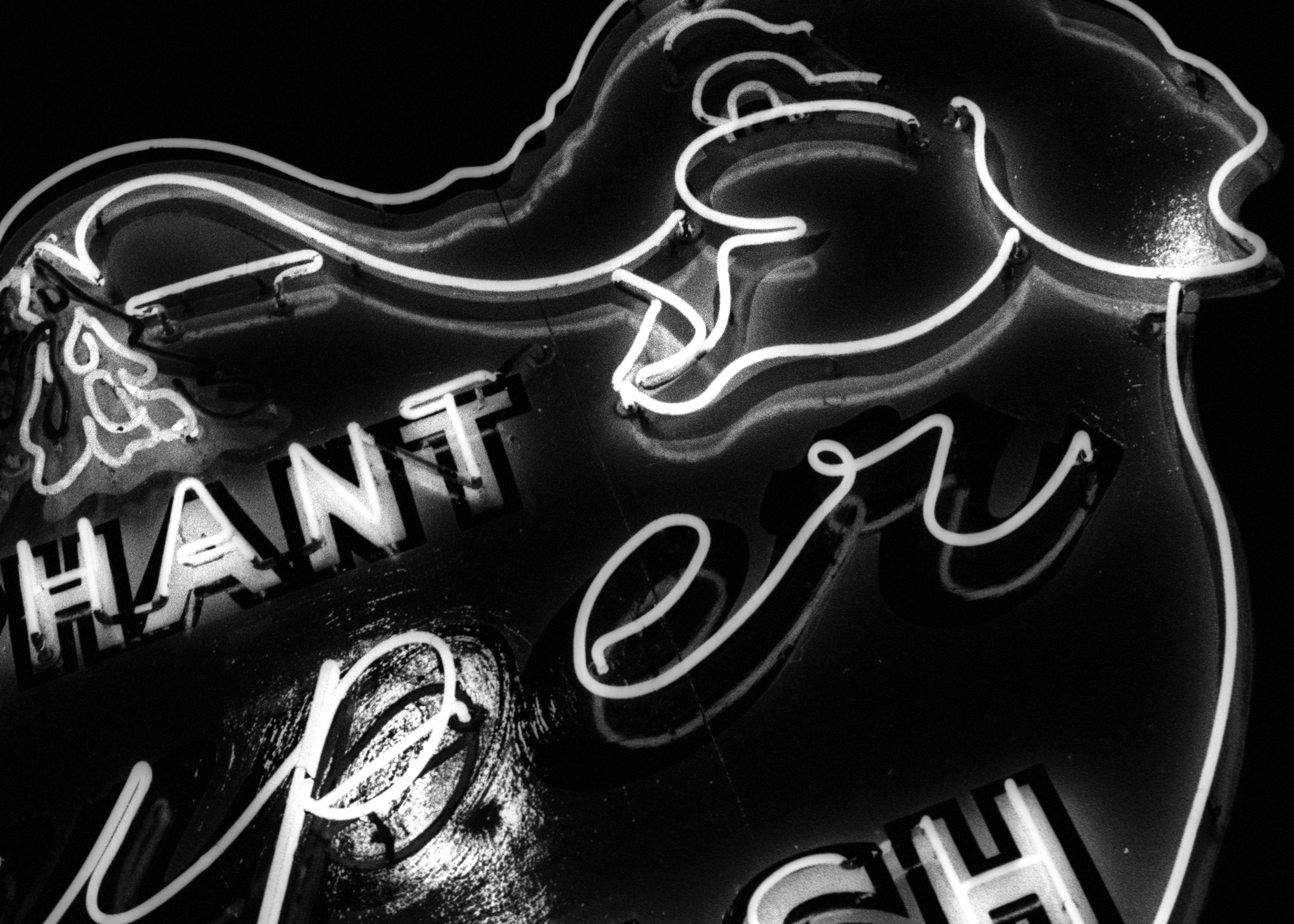 Back in my photography class days at University of Washington, I made my final project about neon. And, not only neon, but neon shot with black and white film. I discovered and documented neon all over Seattle, downtown, by my house, on buildings, on signs. It was a late at night project, often with challenging weather. But, I loved it.