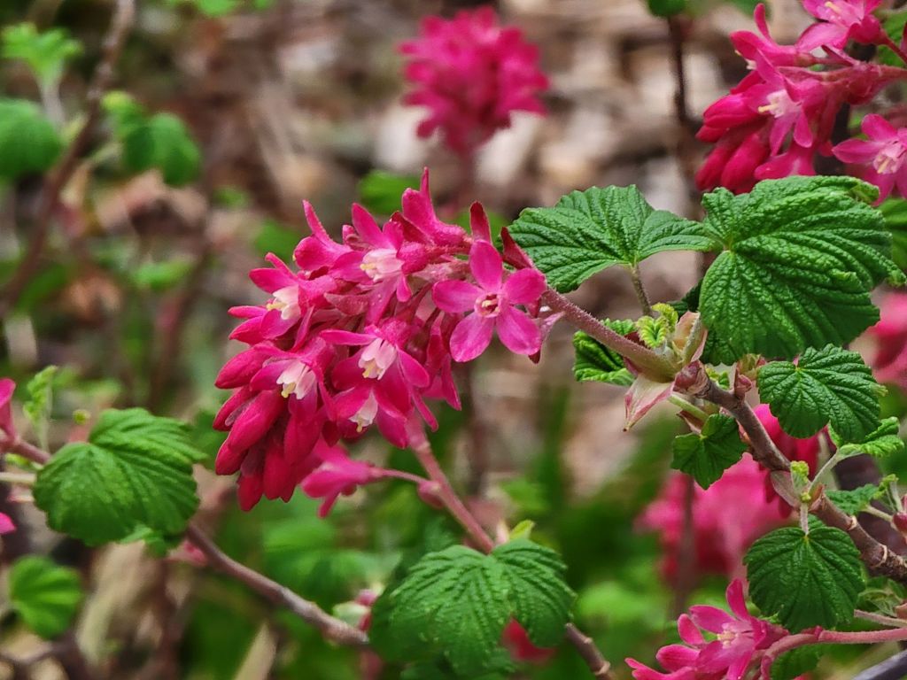 Flowering Currant (two kinds), Forsythia, Camelia, Edgeworthia Chrysantha (red dragon), Hyacinth, Salmonberry, Zygocactus, Carnation, Daffodil, Star Magnolia, Osoberry, small Daffodil, Primrose, Dandelion, Crocus, Zygocactus, Edgeworthia Chrysantha, Hellebore, Snowdrops, Pallida Witchazel, House Finch on Flowering Currant, Hibiscus, Edgeworthia, Snowdrops, Poinsettia, Pine Siskin (pretty sure), Edgeworthia, Rose, and Squirrel!